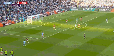精彩进球:第65分钟,奥赖利禁区左侧横传,哈兰德摆脱加布里埃尔扫射破门,曼城2比1阿森纳