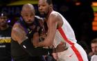 好消息是,杜兰特在上半场成功顶住了压力,将分时的落后15分追至半场时的仅落后3分。然而,坏消息是,火箭队的其他球员却依然未能的低迷状态。上半场,火箭队其余球员合计41投仅12中,命中率仅为29.3%。表现堪称丑陋,而湖人队也并未好到哪里去。第二节和第三节的连续失误,让火箭队获得了多次转换进攻的机会,分差也因此被紧紧咬住。然而,在这场比赛中,火箭队的底线似乎总在不断被突破。