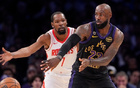 而且G2这场比赛,从一开场就应该载入史册。因为这是詹杜在季后赛中第15次交手,也是两人在季后赛中首次首轮相见。两人的前14次交手,都发生在总决赛的舞台上。詹杜对决,一直是十几年来NBA中最受关注的焦点。本场比赛前,两人季后赛期间交手战绩杜兰特9胜5负领先。而这一次交手的结果显而易见,41岁的詹姆斯,表现完爆了杜兰特。全场比赛詹姆斯砍下28分8篮板7助攻,其中末节独得14分率队取胜;而杜兰特复出上半场表现极其强势,7投6中独得20分。但下半场面对湖人队的疯狂包夹,没能站出来,只得到3分。全场比赛得到23分,但是出现了9次失误!