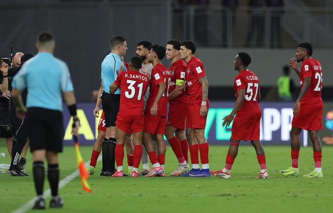 而当终场哨响后,迪拜国民的球员们还是继续向裁判施压,31号考安·桑托斯直接手指裁判怒骂。