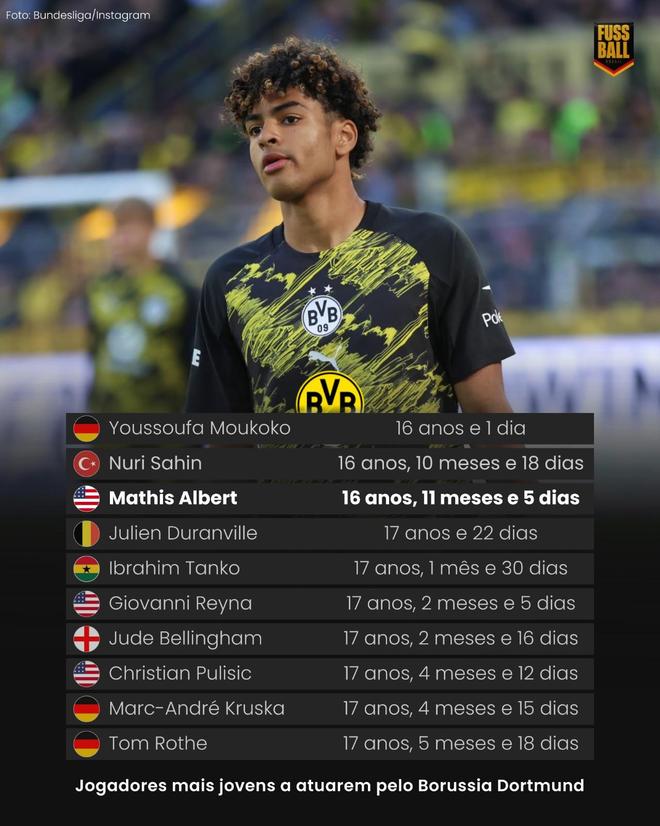 16岁11个月零五天,阿尔伯特成为多特队史第三年轻出场球员